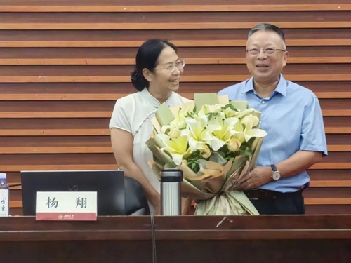 而后,曾經作為楊教授學生的馬青波老師向楊教授獻上鮮花,往昔師生有幸再度同框,同學們感觸頗深,現(xiàn)場掌聲不絕,講座由此圓滿結束。